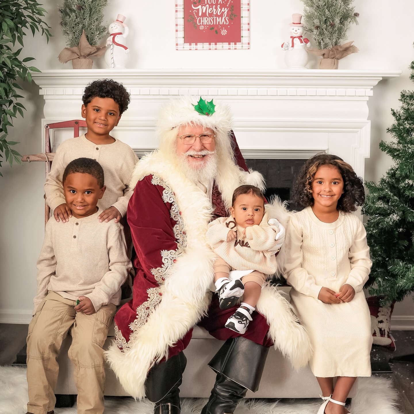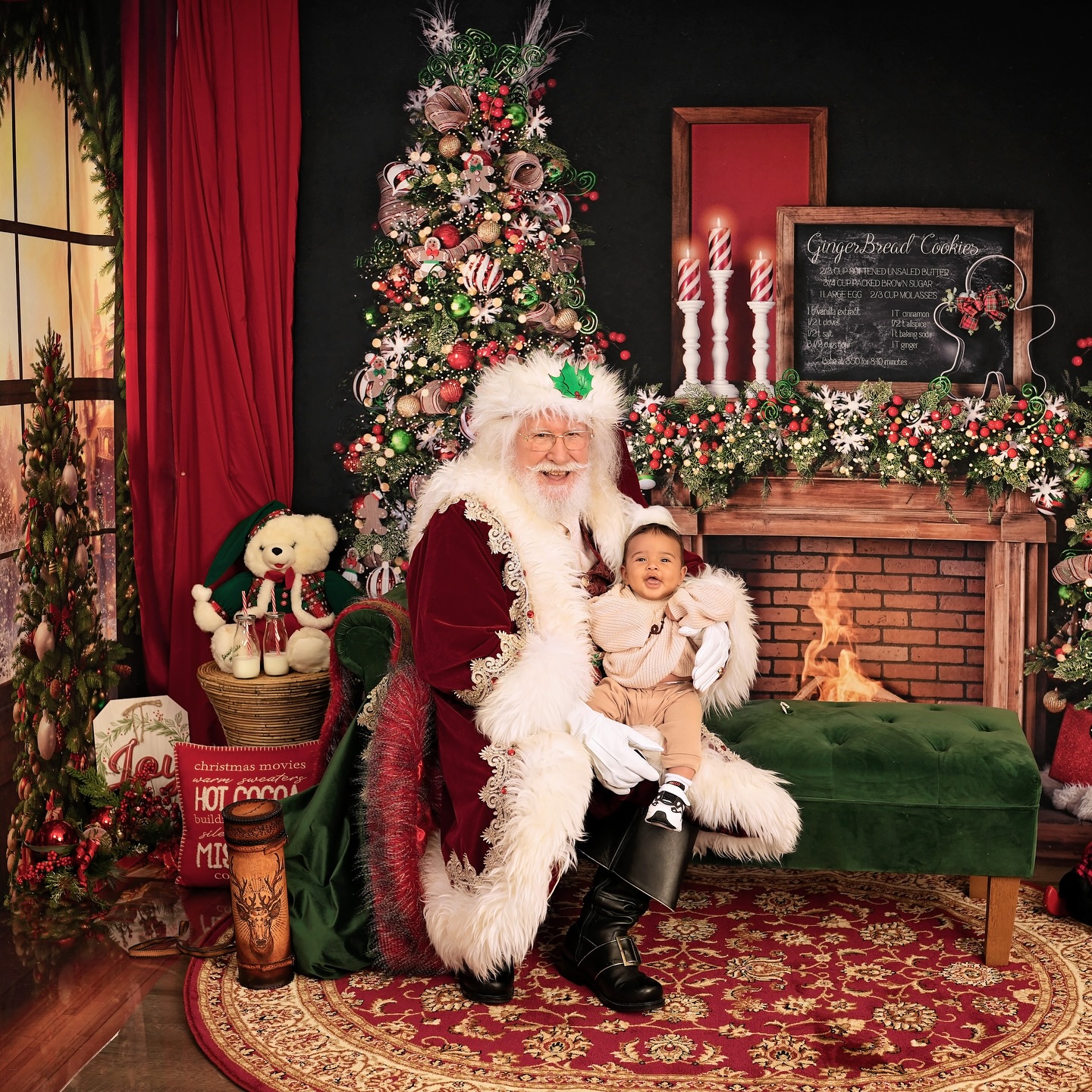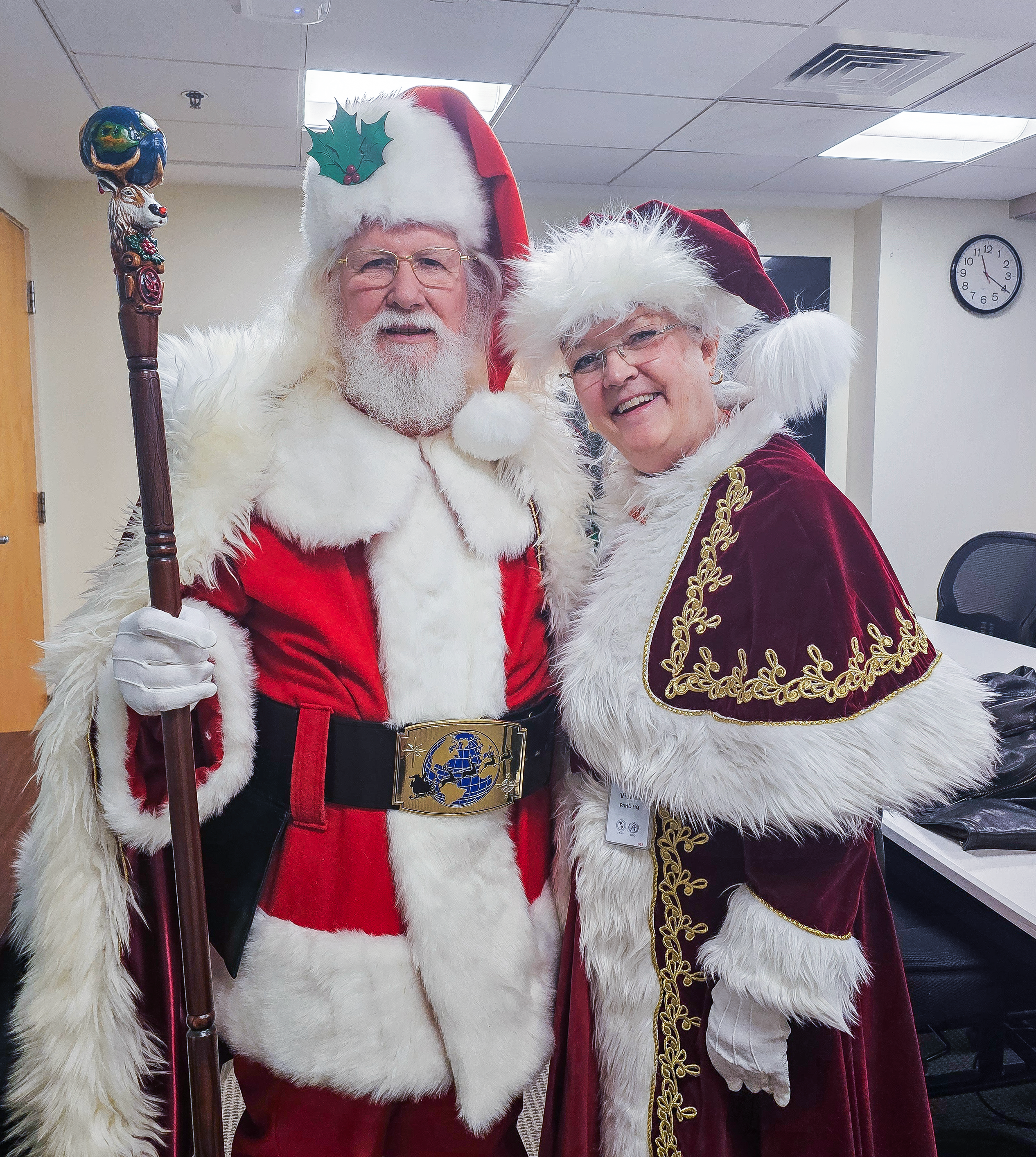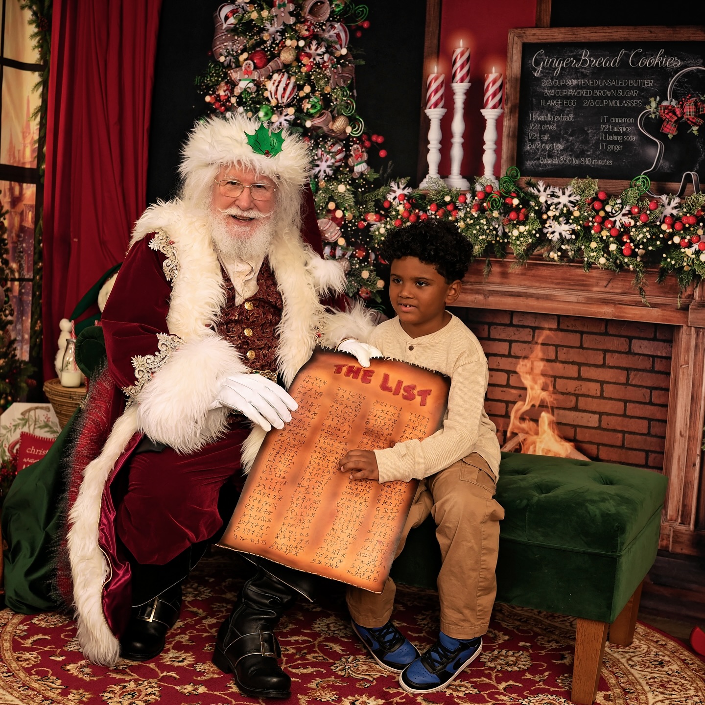 His custom-made attire includes knee-high black leather boots with a golden “S” for Santa Claus, a deep red suit with fur trim and matching hat, a 4-inch Holly motif black belt, and crisp white gloves, ensuring the authentic Santa experience for all. He even has a North Pole Driver’s license and a North Pole International Passport. He prefers being addressed as “Santa