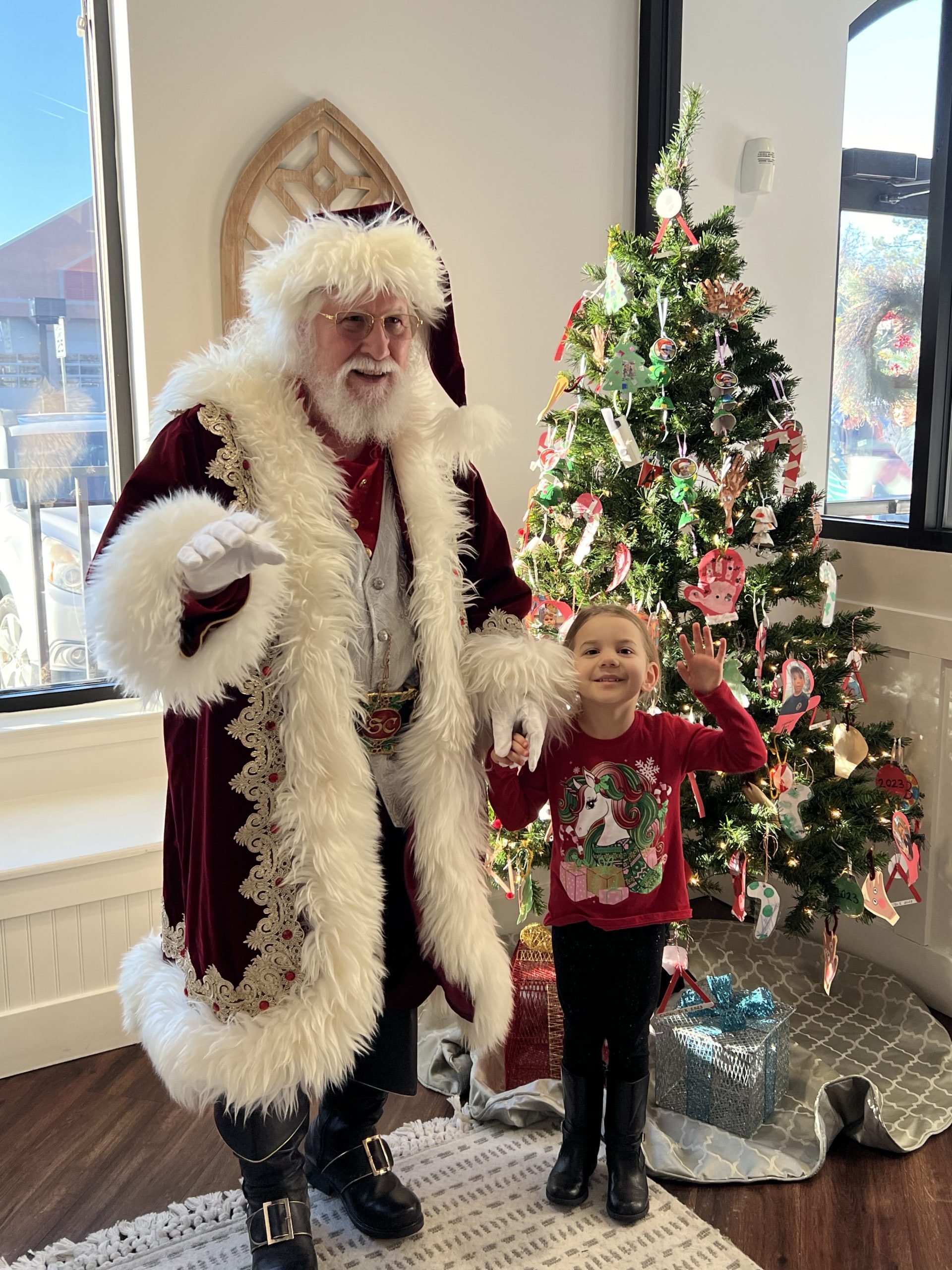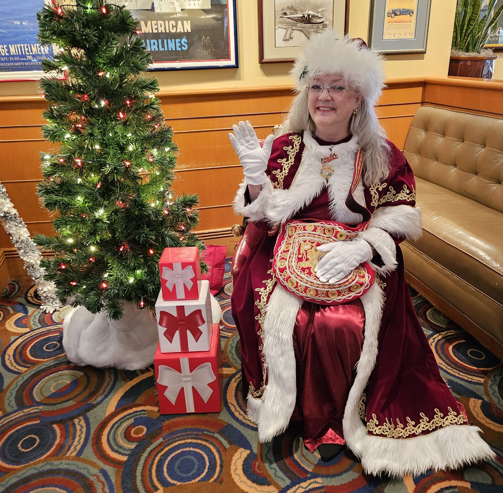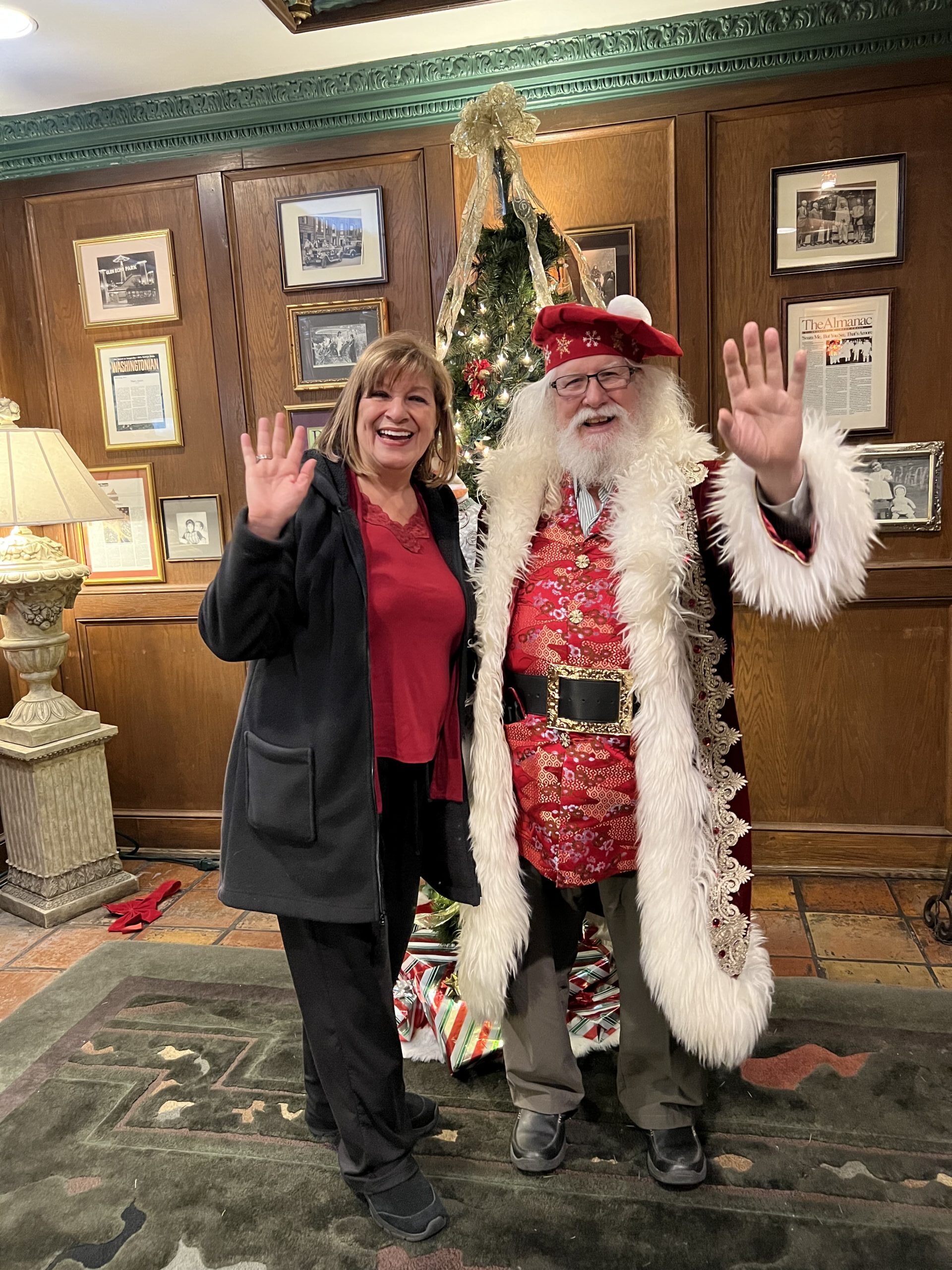 Mrs. Claus Alice, also from Potomac, Maryland, is Santa Jeffrey’s wife and event partner. She graduated from the same Santa school as Santa.