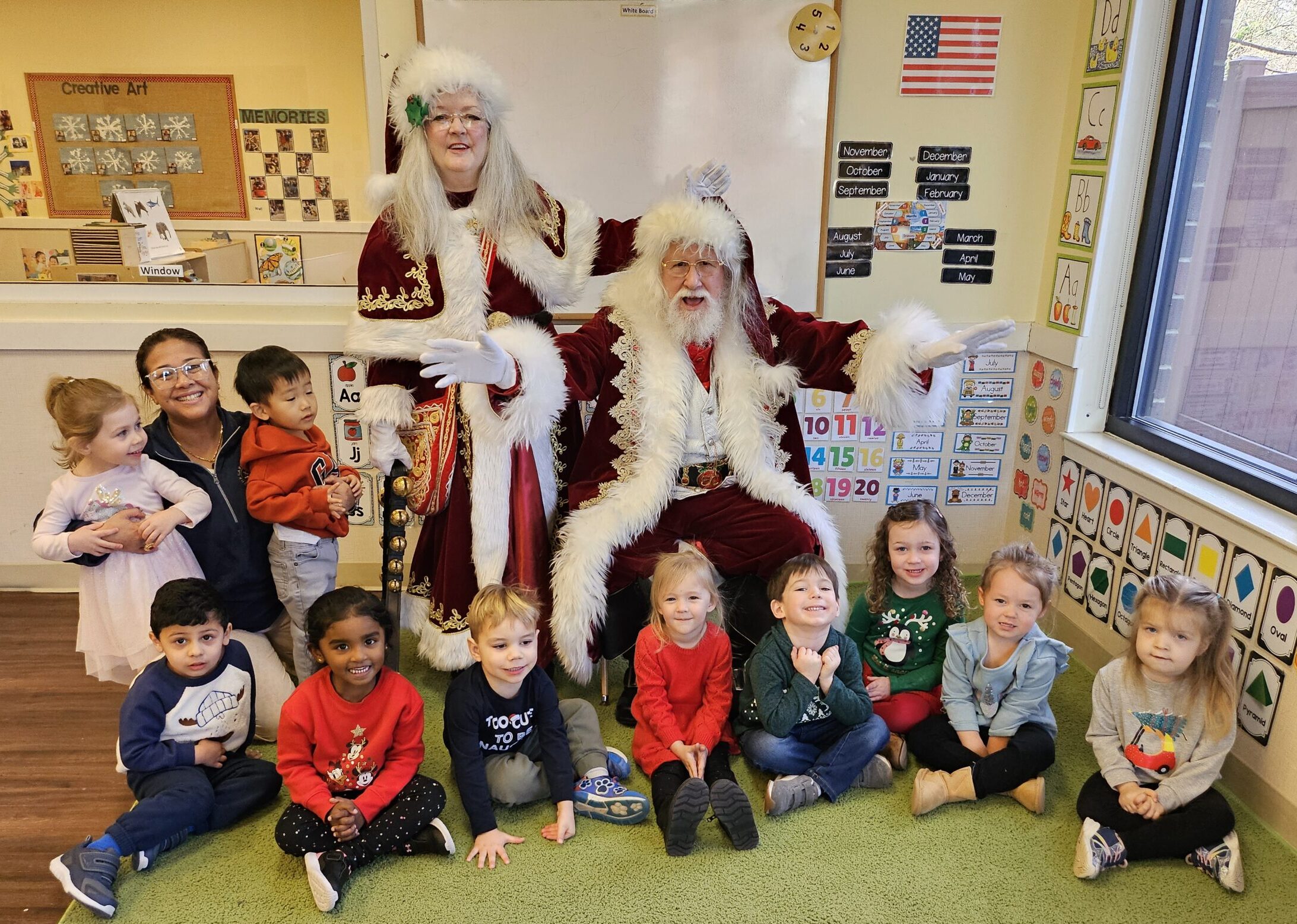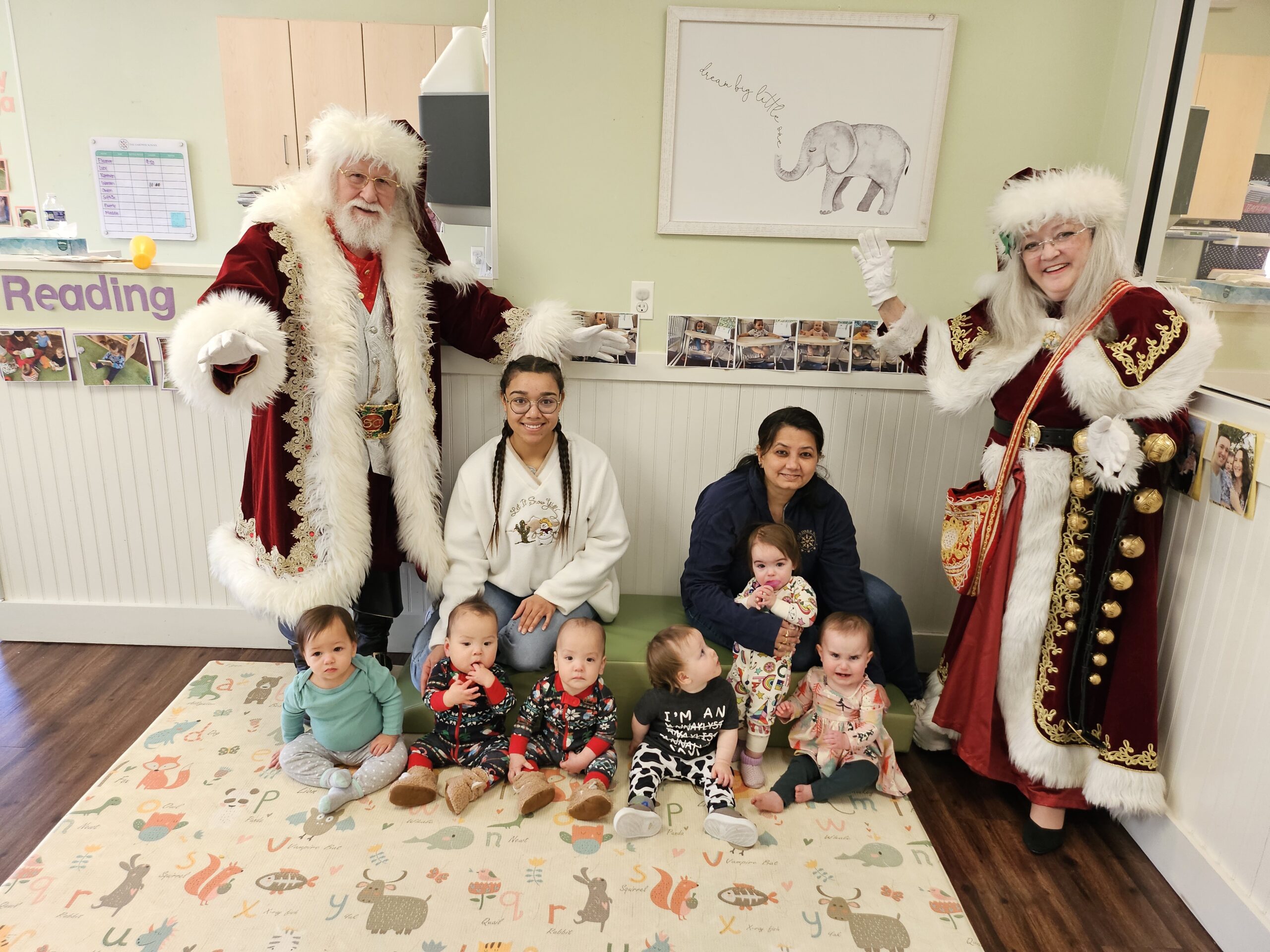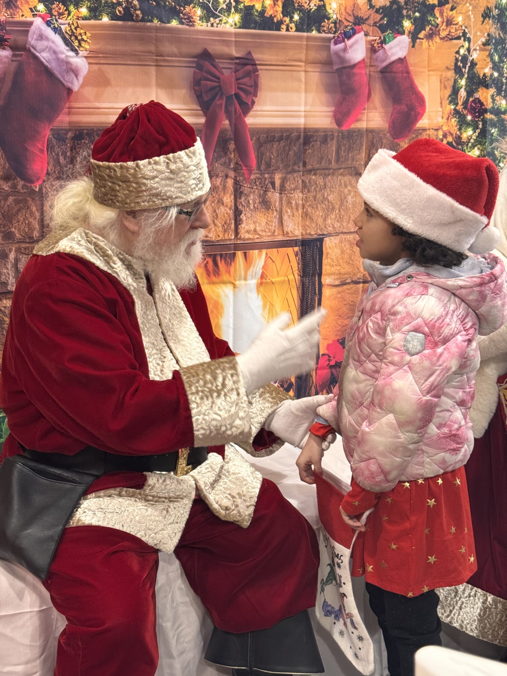 Mrs. Claus Alice, also from Potomac, Maryland, is Santa Jeffrey’s wife and event partner. She graduated from the same Santa school as Santa.